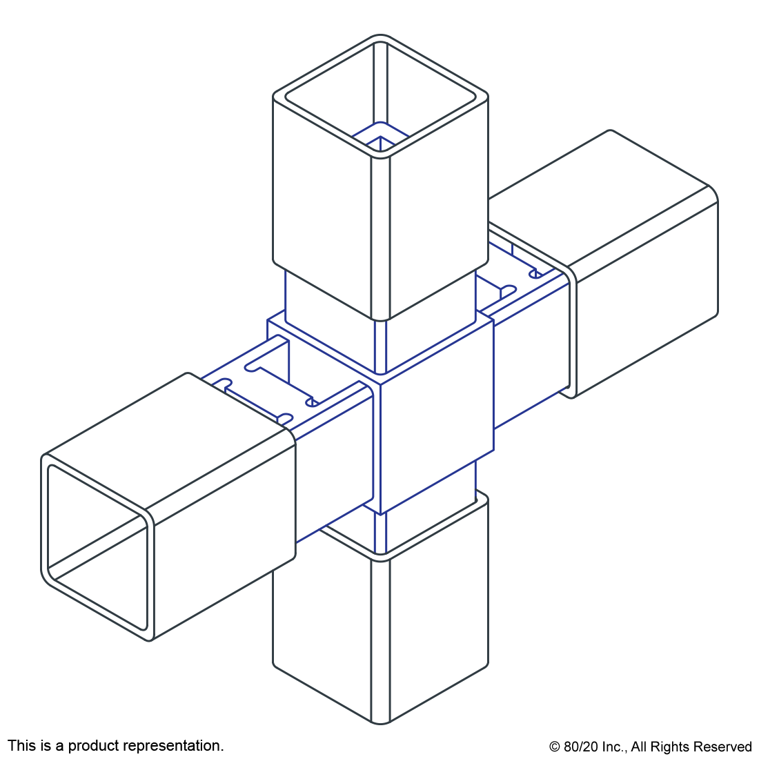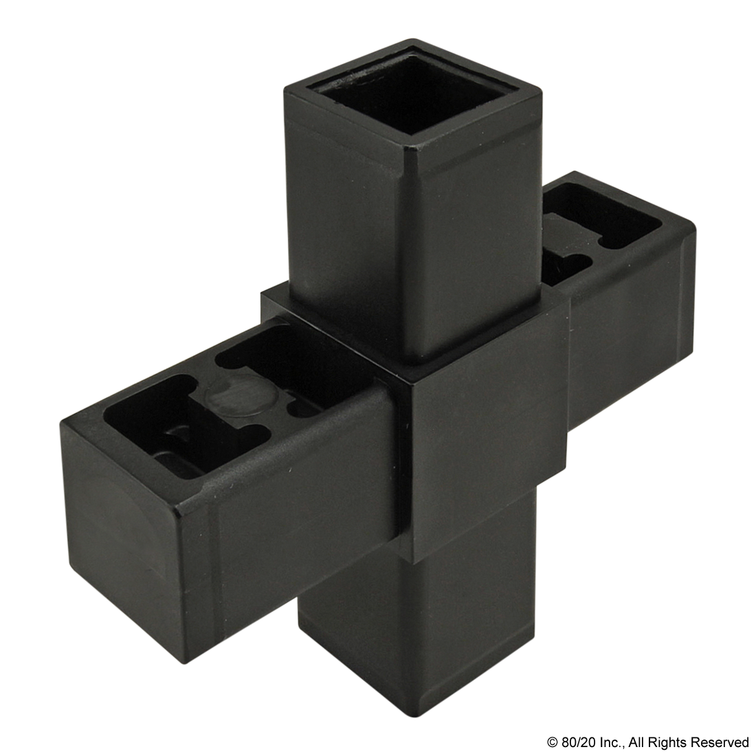 THE 4 WAY - CROSS CONNECTOR IS MADE OF NYLON AND IS USED WITH A QUICK FRAME PROFILE WHICH HAS BUILT-IN RIDGES THAT BITE INTO THE FASTENER TO CREATE TENSION WITHOUT THE USE OF ADDITIONAL HARDWARE. IT PROVIDES FLUSH CONNECTIONS OF UP TO FOUR QUICK FRAME PROFILES, FORMING 90 DEGREE OR 180 DEGREE CONNECTIONS. THE 4 WAY - CROSS CONNECTOR IS COMMONLY USED WHEN TRANSITIONING BETWEEN STANDARD AND FLANGED PROFILES AND USES ONLY A SOFT-FACED MALLET TO FORM LIGHT-DUTY YET STURDY BUILDS. IT REQUIRES NO MACHINING SERVICES OR ADDITIONAL HARDWARE.,