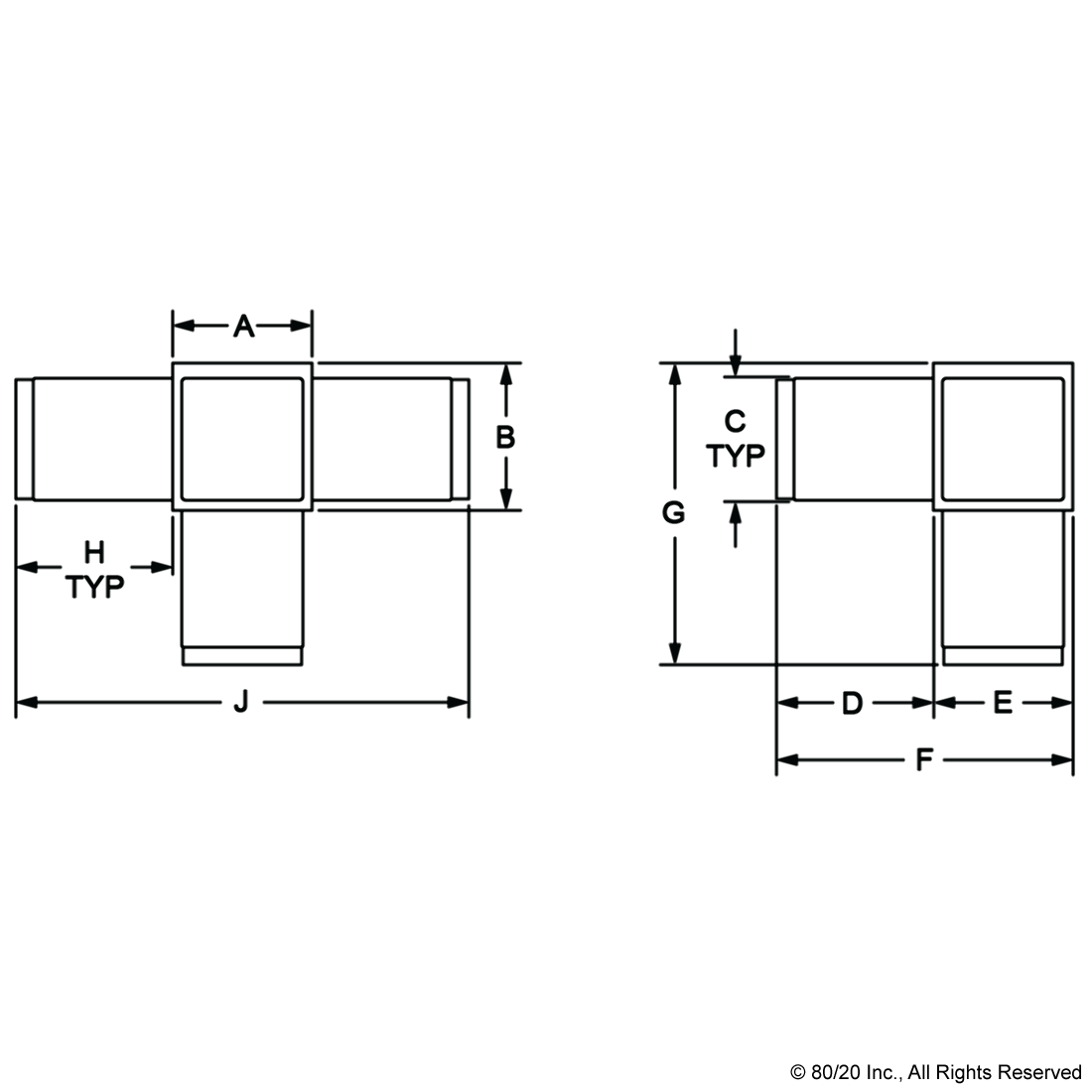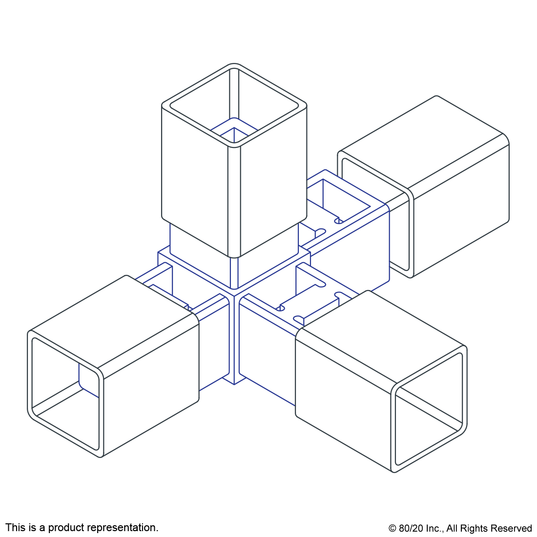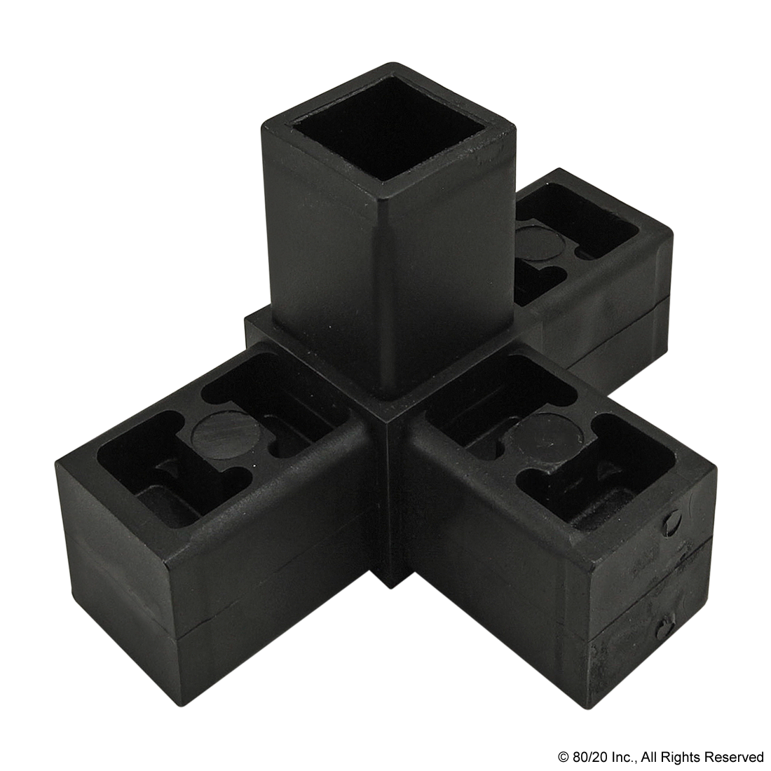 THE 4 WAY - CORNER CONNECTOR IS MADE OF NYLON AND IS USED WITH A QUICK FRAME PROFILE WHICH HAS BUILT-IN RIDGES THAT BITE INTO THE FASTENER TO CREATE TENSION WITHOUT THE USE OF ADDITIONAL HARDWARE. IT PROVIDES FLUSH CONNECTIONS OF UP TO FOUR QUICK FRAME PROFILES, FORMING 90 DEGREE OR 180 DEGREE CONNECTIONS. THE 4 WAY - CORNER CONNECTOR IS CONVENIENT WHEN YOU WANT TO BRANCH ANOTHER PROFILE OFF OF A CORNER OR STRAIGHT LINE. THE 4-WAY CORNER CONNECTOR IS COMMONLY USED WHEN TRANSITIONING BETWEEN STANDARD AND FLANGED PROFILES AND USES ONLY A SOFT-FACED MALLET TO FORM LIGHT-DUTY YET STURDY BUILDS. IT REQUIRES NO MACHINING SERVICES OR ADDITIONAL HARDWARE.,