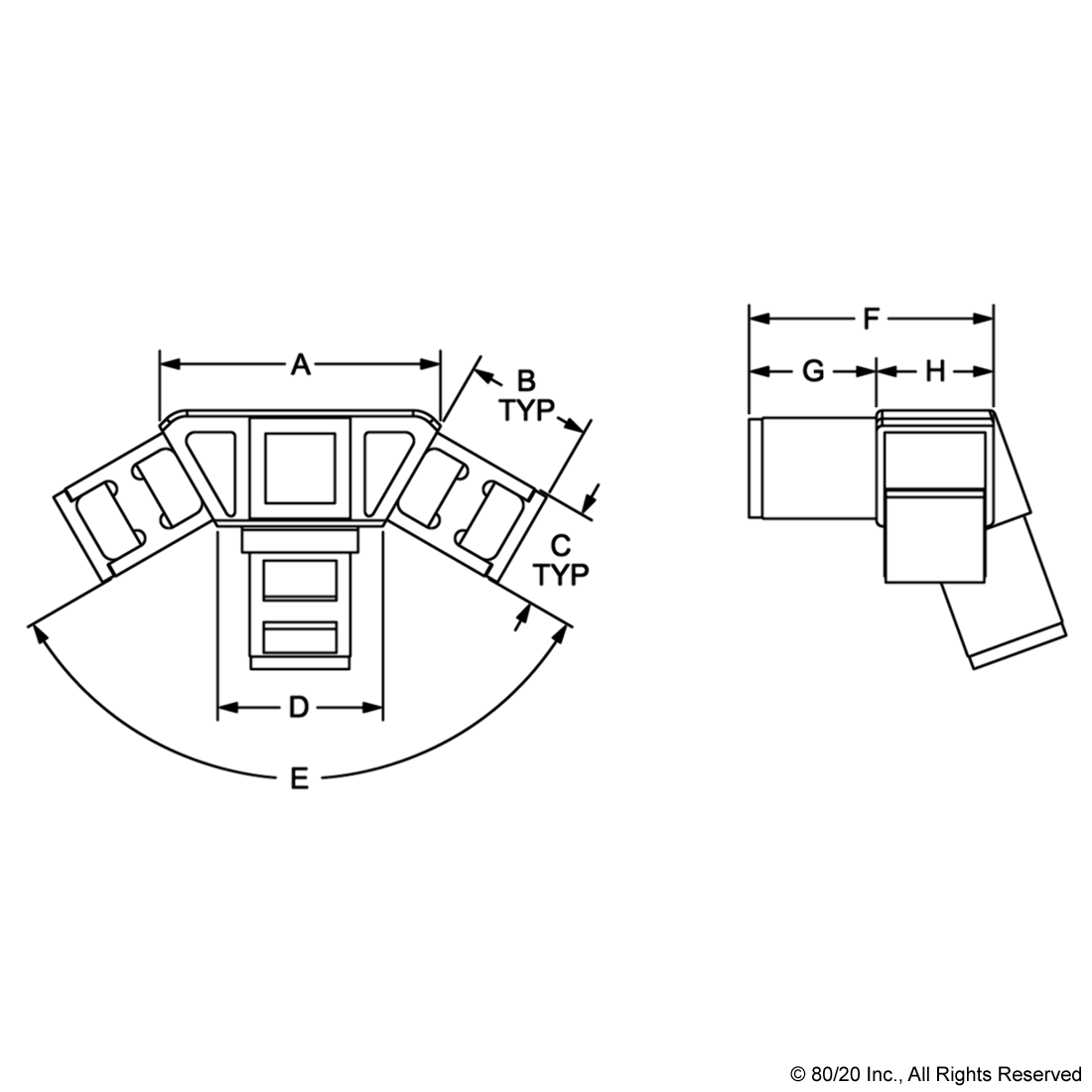THE 60 DEGREE HEXAGON SIDE AND TOP CONNECTOR IS MADE OF NYLON AND IS USED WITH A QUICK FRAME PROFILE WHICH HAS BUILT-IN RIDGES THAT BITE INTO THE FASTENER TO CREATE TENSION WITHOUT THE USE OF ADDITIONAL HARDWARE. IT CREATES A UNIQUE CONNECTION PERFECT FOR GUARDING AND DISPLAY APPLICATIONS AND CAN BE USED WITH OTHER CONNECTORS TO CREATE AN ENCLOSURE. THE 60 DEGREE HEXAGON SIDE AND TOP CONNECTOR PROVIDES FLUSH CONNECTIONS OF UP TO SEVEN QUICK FRAME PROFILES USING ONLY A SOFT-FACED MALLET TO FORM LIGHT-DUTY YET STURDY BUILDS. THE TOP PITCH IS 20 DEGREES. IT REQUIRES NO ADDITIONAL HARDWARE AND NO MACHINING SERVICES.