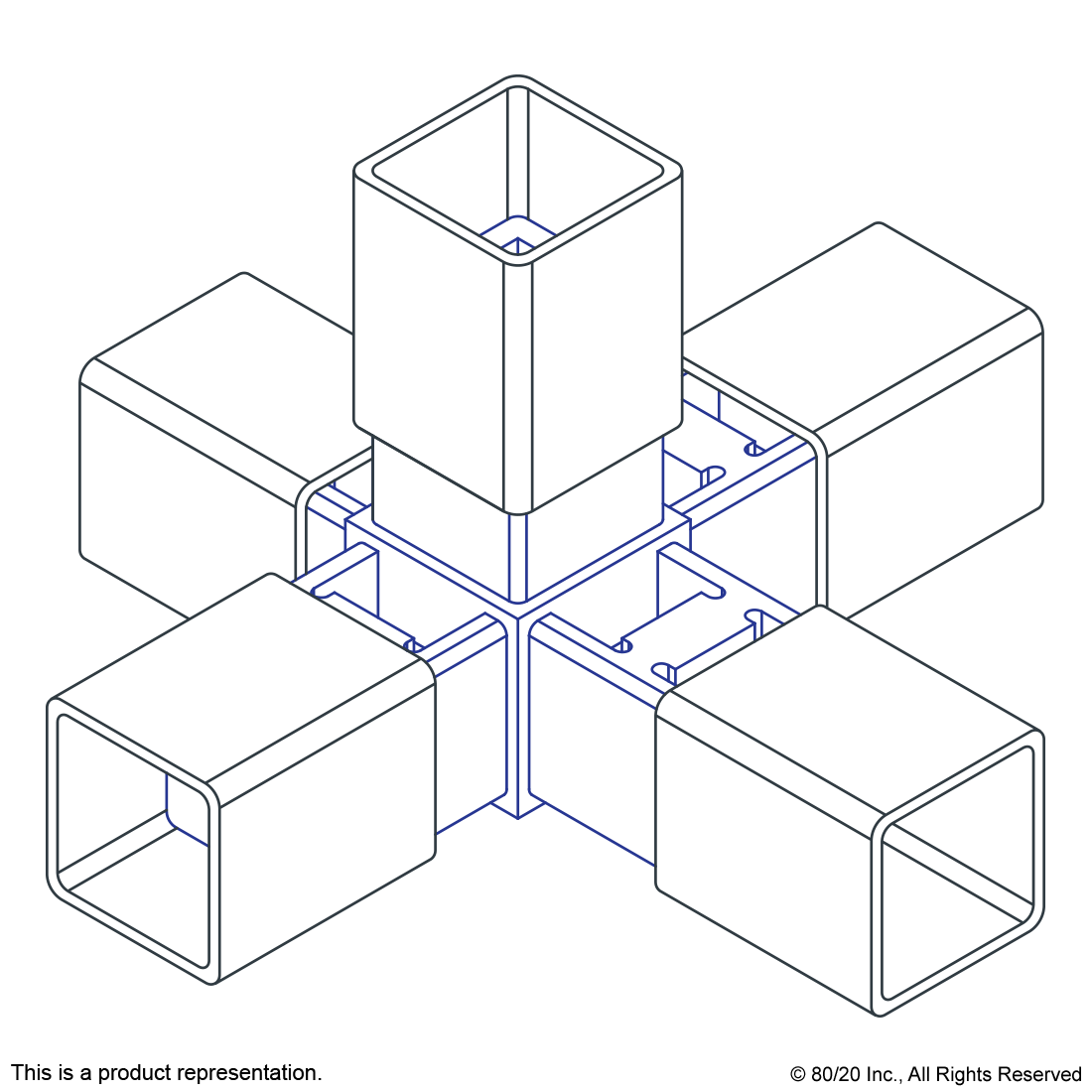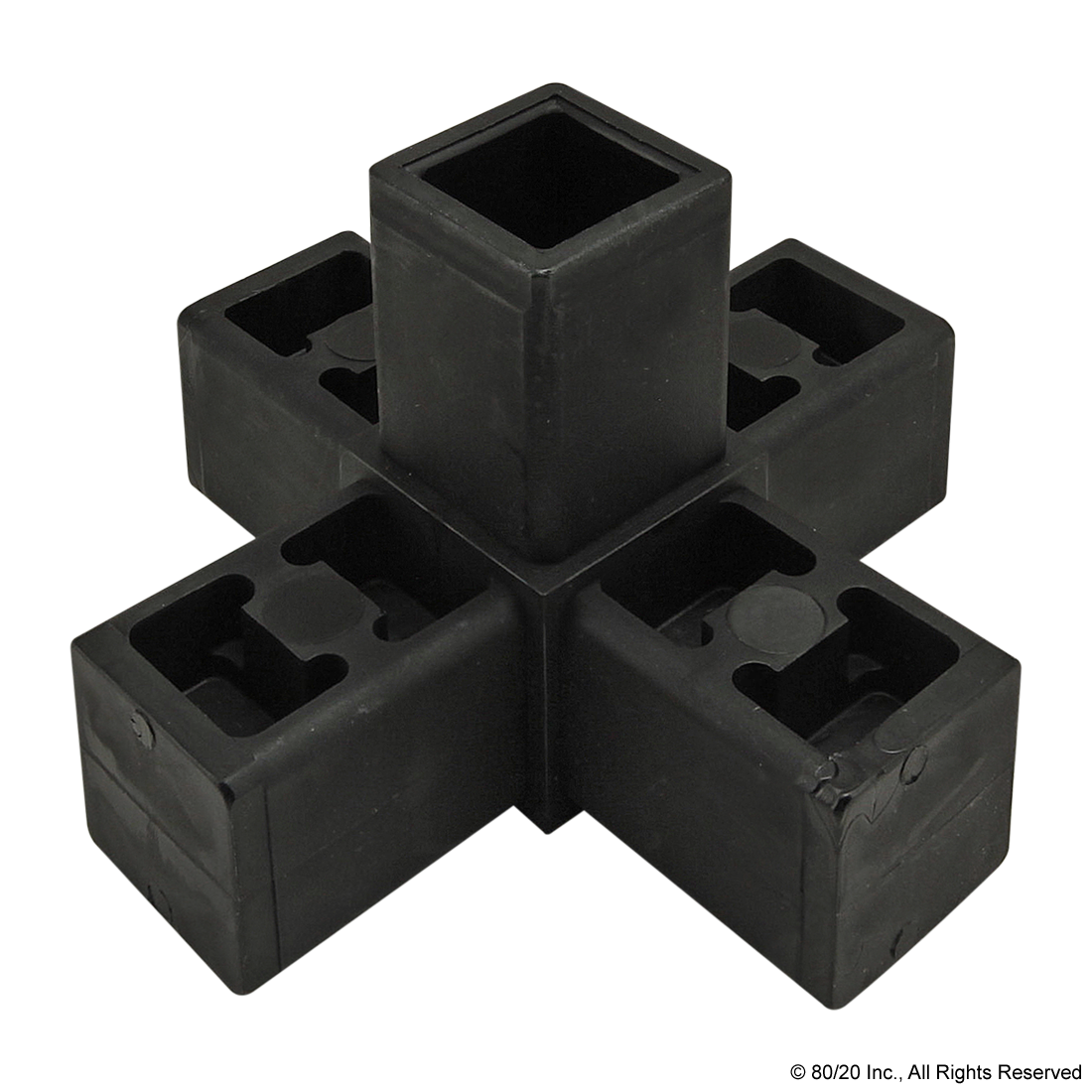 THE 5 WAY - JUNCTION CONNECTOR IS MADE OF NYLON AND IS USED WITH A QUICK FRAME PROFILE WHICH HAS BUILT-IN RIDGES THAT BITE INTO THE FASTENER TO CREATE TENSION WITHOUT THE USE OF ADDITIONAL HARDWARE. IT PROVIDES FLUSH CONNECTIONS OF UP TO FIVE QUICK FRAME PROFILES, FORMING 90 DEGREE OR 180 DEGREE CONNECTIONS. THE 5 WAY - JUNCTION CONNECTOR IS COMMONLY USED WHEN TRANSITIONING BETWEEN STANDARD AND FLANGED PROFILES AND USES ONLY A SOFT-FACED MALLET TO FORM LIGHT-DUTY YET STURDY BUILDS. IT REQUIRES NO ADDITIONAL HARDWARE AND NO MACHINING SERVICES.,