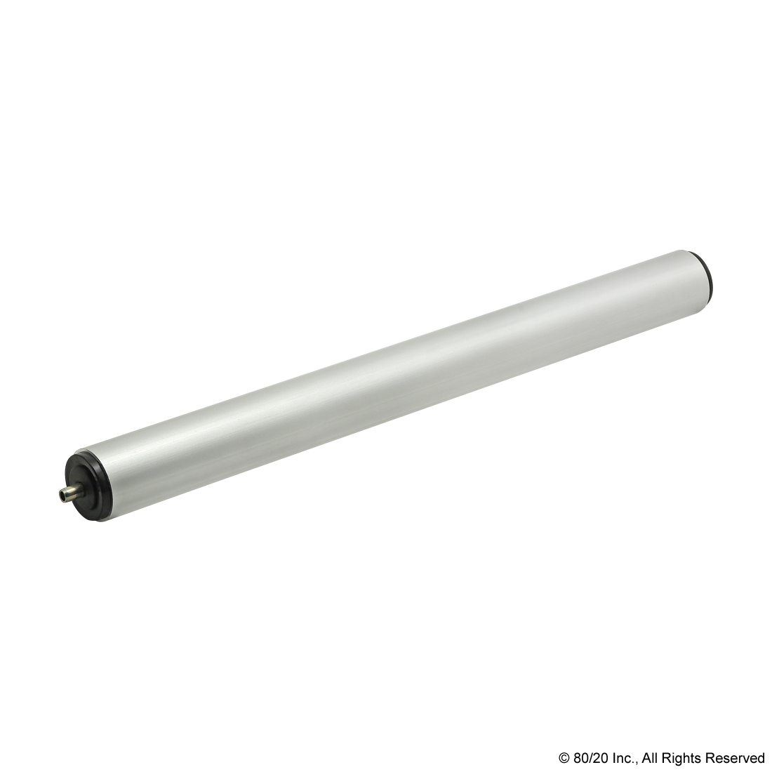 THE GRAVITY ROLLER IS TYPICALLY USED WITH READY TUBEâ„¢ PROFILES OR GRAVITY ROLLER MOUNTING BLOCKS AND T-SLOT PROFILES TO BUILD CUSTOM MATERIAL HANDLING AND CONVEYOR APPLICATIONS. THE ROLLER HAS SPRING-LOADED PINS THAT SNAP EASILY INTO THE HOLES OF A READY TUBEâ„¢ PROFILE. THE ROLLER IS ALUMINUM WITH PLASTIC INSERTS, MAKING IT A STRONG AND DURABLE OPTION. THERE ARE LENGTHS AVAILABLE TO ACCOMMODATE FRAME OPENINGS FROM 15-27 INCHES (381-685.8MM) WIDE.,