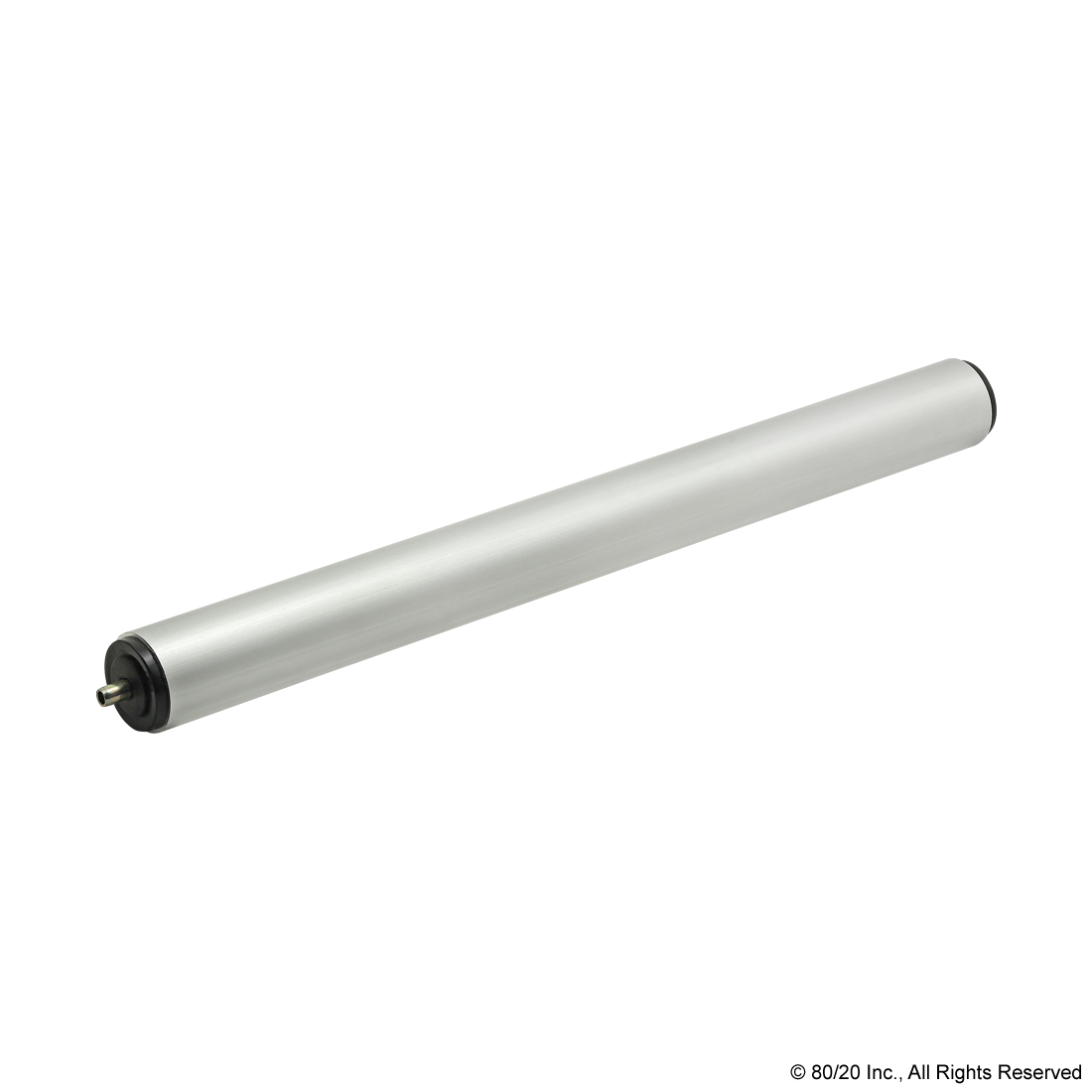 THE GRAVITY ROLLER IS TYPICALLY USED WITH READY TUBEâ„¢ PROFILES OR GRAVITY ROLLER MOUNTING BLOCKS AND T-SLOT PROFILES TO BUILD CUSTOM MATERIAL HANDLING AND CONVEYOR APPLICATIONS. THE ROLLER HAS SPRING-LOADED PINS THAT SNAP EASILY INTO THE HOLES OF A READY TUBEâ„¢ PROFILE. THE ROLLER IS ALUMINUM WITH PLASTIC INSERTS, MAKING IT A STRONG AND DURABLE OPTION. THERE ARE LENGTHS AVAILABLE TO ACCOMMODATE FRAME OPENINGS FROM 15-27 INCHES (381-685.8MM) WIDE.,