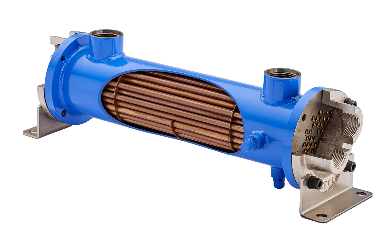 PREFERRED FOR NEW OIL-WATER APPLICATIONS,RUGGED STEEL CONSTRUCTION,LOW COST,NPT, SAE O-RING, SAE FLANGE, OR BSPP SHELL SIDE CONNECTIONS AVAILABLE,END BONNETS REMOVABLE FOR SERVICING,MOUNTING FEET INCLUDED (MAY BE ROTATED IN 90° INCREMENTS)