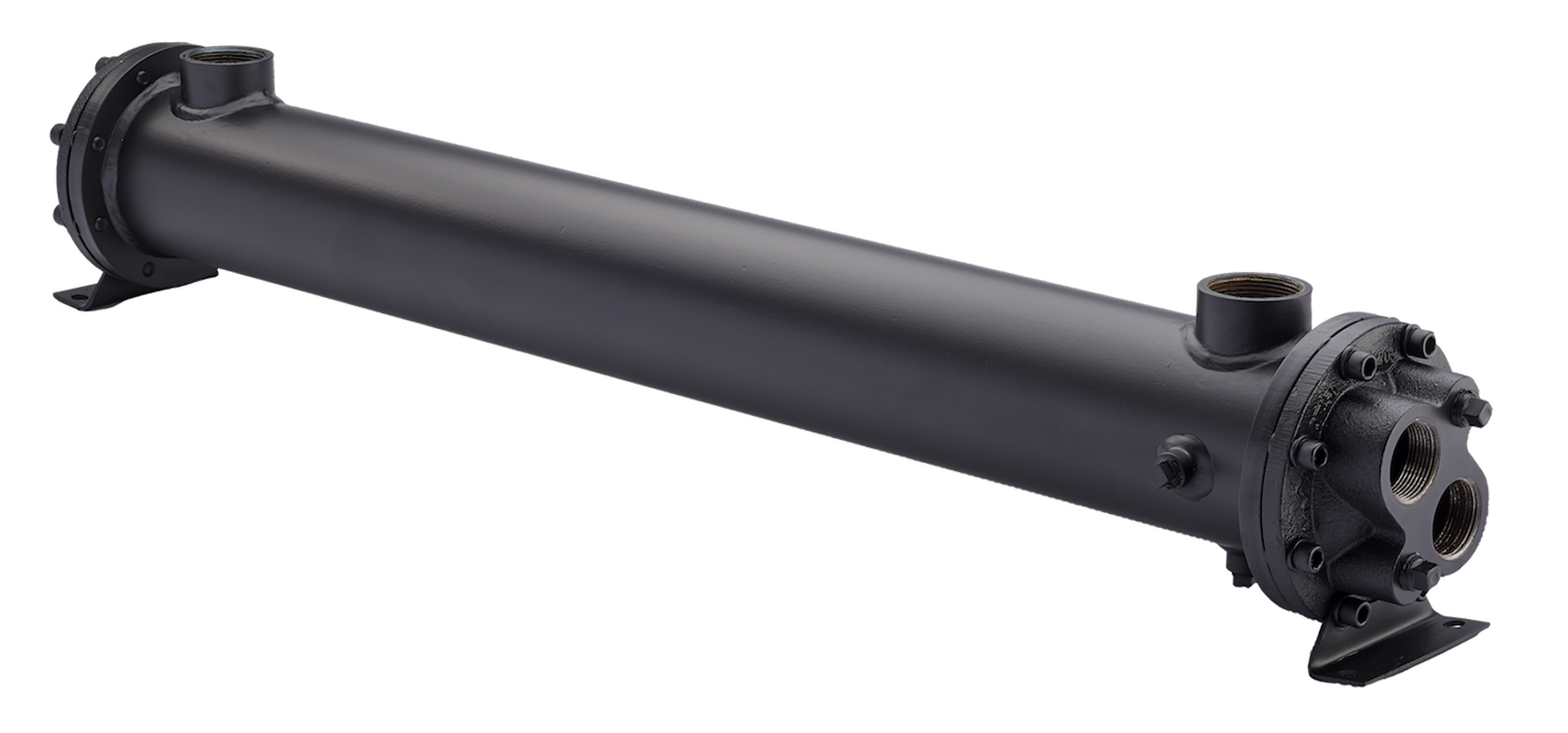 PREFERRED FOR NEW OIL-WATER APPLICATIONS,RUGGED STEEL CONSTRUCTION,LOW COST,NPT, SAE O-RING, SAE FLANGE, OR BSPP SHELL SIDE CONNECTIONS AVAILABLE,END BONNETS REMOVABLE FOR SERVICING,MOUNTING FEET INCLUDED (MAY BE ROTATED IN 90° INCREMENTS)