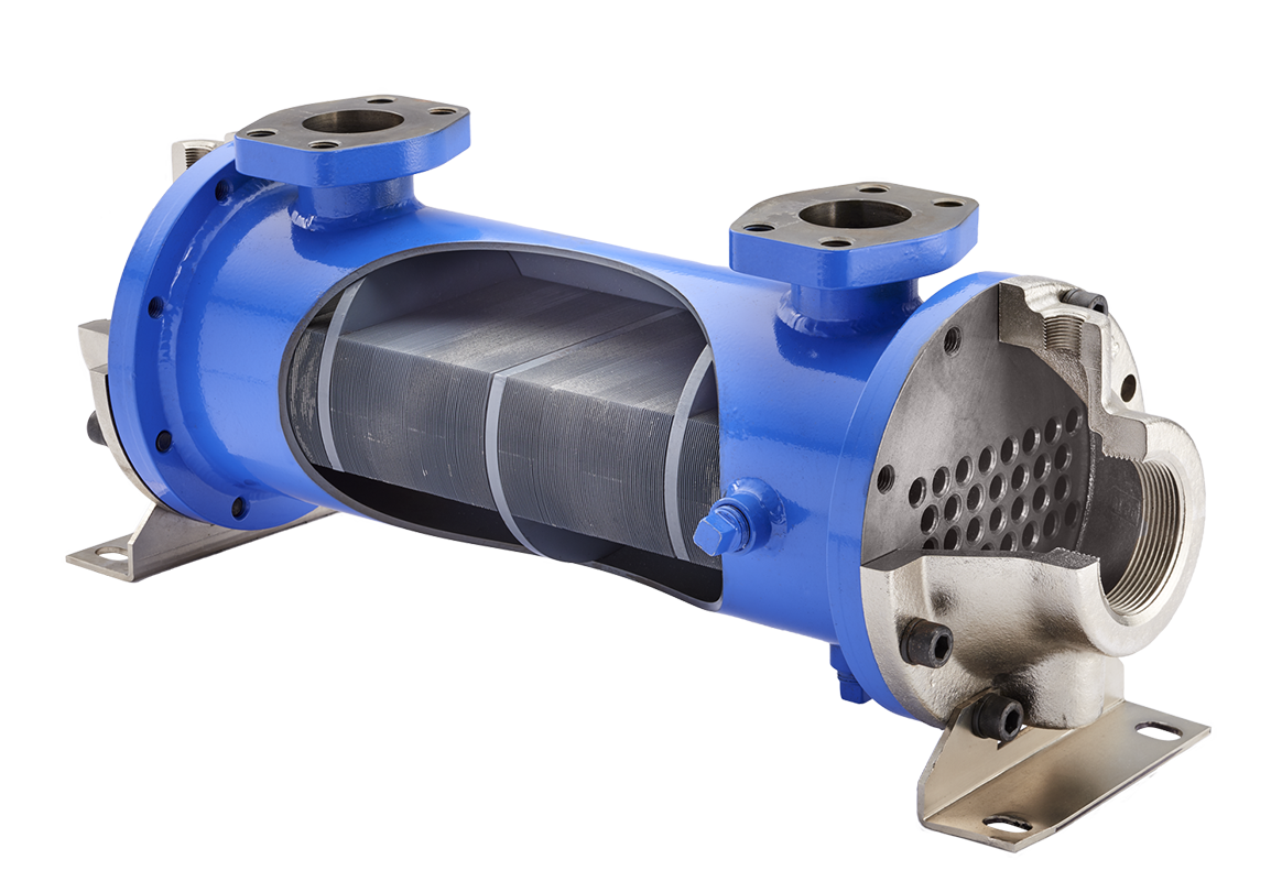 - Baffle spacing: 9Baffles material: steelCooling tube material: CopperEnd bonnet material: Cast IronEnd caps: Grey ironFin material: AluminumGasket material: Nitrile rubber/cellulose fiberMaximum operating pressure - shell side(psi): 300Maximum operating temperature (°f): 300Model series: ECFModel size: 1772Mounting brackets material: steelShell material: steelTube material: CopperTube sheet: steelTube sheet material: Steel