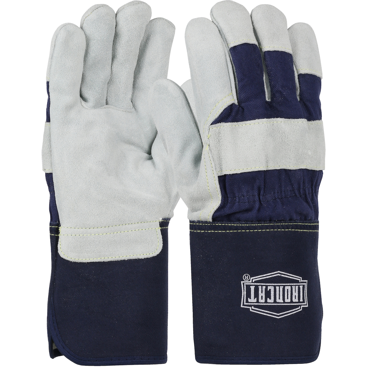 - Back: CanvasBrand: Ironcat®Case qty: 72Case uom: prCategory: Welding ProtectionColor: BlueConstruction: --Cut-and-Sewn--Rubberized Cuff--Gunn Cut--Cuff: GauntletGrade: PremiumGrouping: Hand Protect-WeldingHide: Split CowhidePalm: SingleSegment: Fabric GlovesSize: MSizes: --L--M--XL--Specs: Premium Select Split Cowhide|Heavy Blue Canvas|Sewn with Aramid|Wing Thumb|Blue Rubberized Gauntlet CuffStyle: IC8