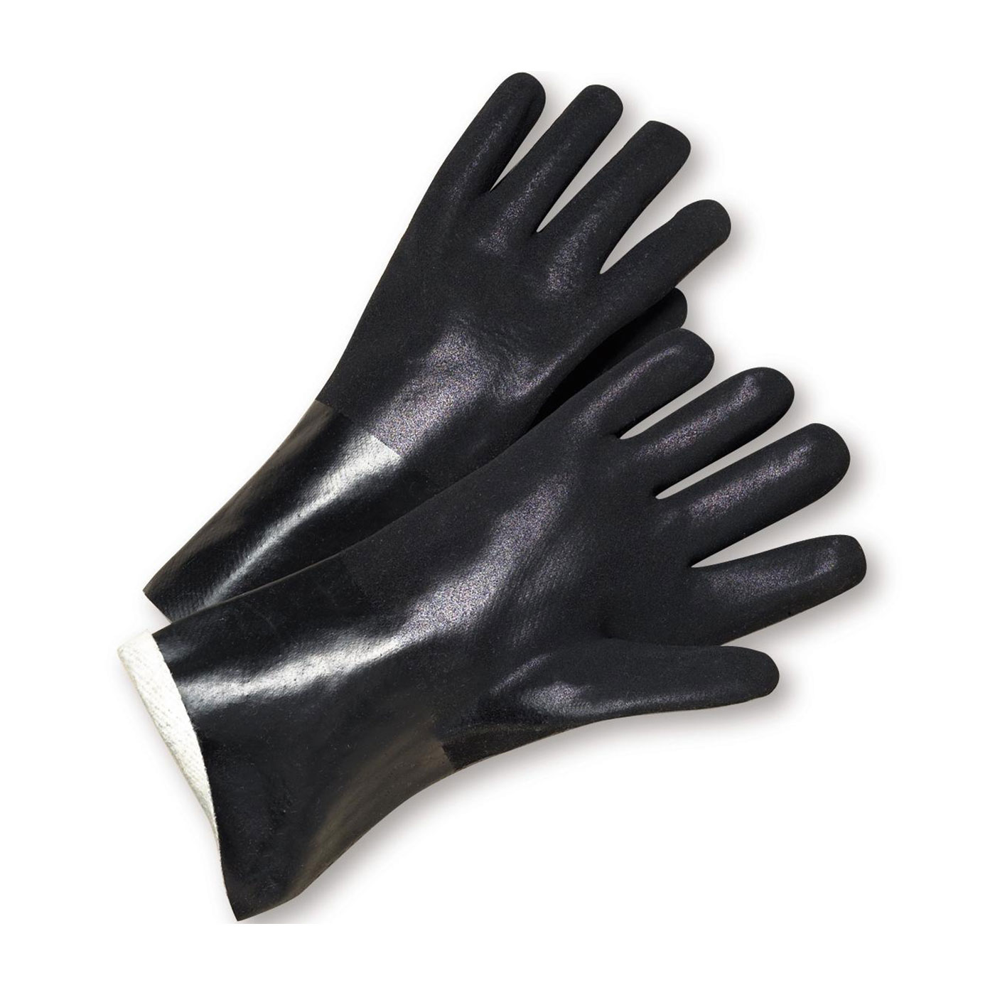 - Brand: West Chester®Case qty: 72Case uom: eaCategory: Hand ProtectionCoating: PVCCoating color: BlackCoating coverage: Full HandColor: BlackConstruction: --Supported--Cuff: StraightFeatures: Soft jersey liners provide comfort and moderate insulation|Single dip construction|Straight cuff adds additional length to protect the forearm from liquid run-offGrip: RoughGrouping: Chemical ResistantLength: 12Liner material: --Jersey--Lining: JerseyPolymer: PVCSegment: Coated Supported GlovesSize: 12"Sizes: --12"--Specs: Jersey Lined|PVC Dipped|12-inch Length|Black|Rough FinishStyle: J1027RF