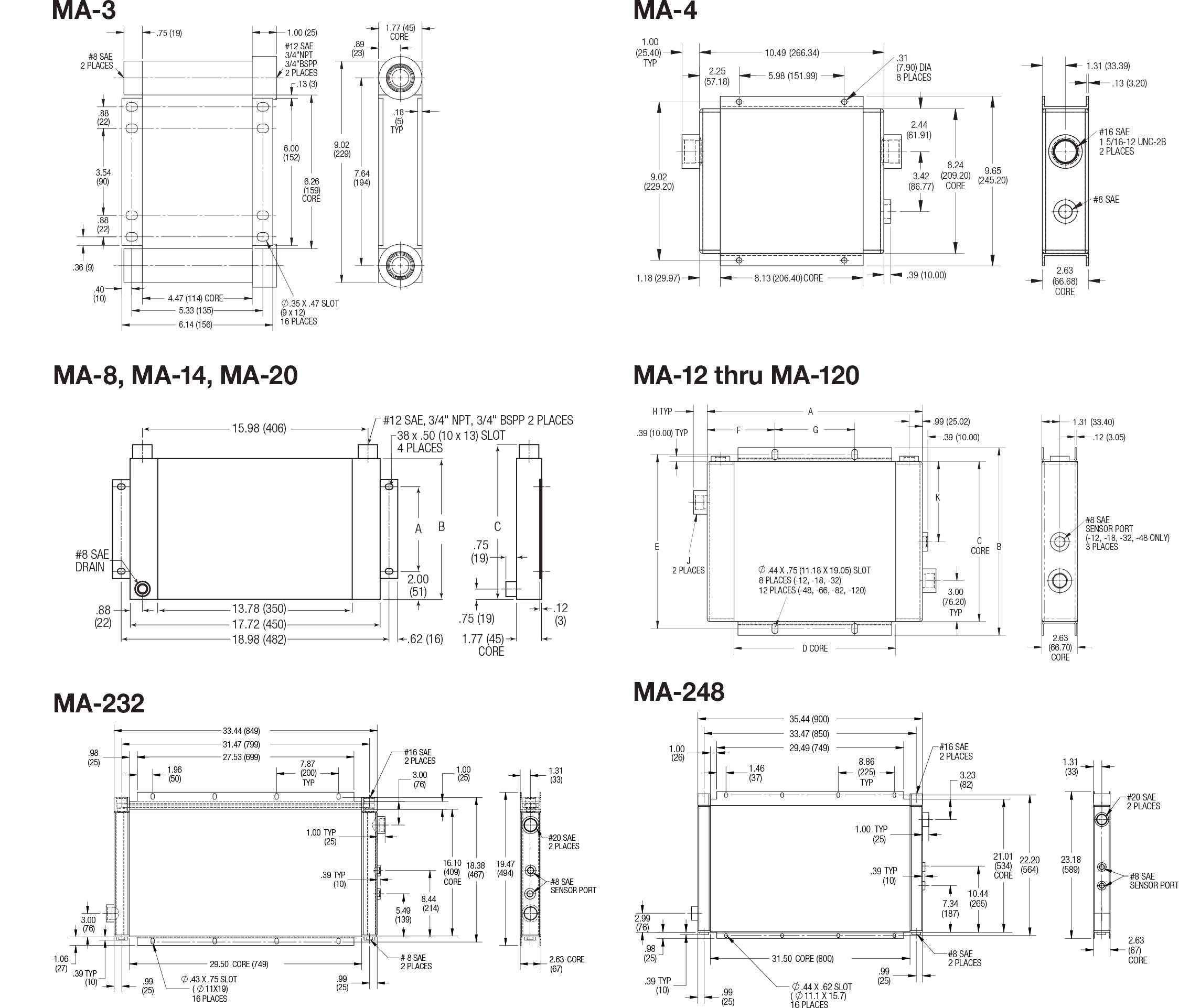 - Connection Type: BSPPConnections material: AluminumCore Material: Brazed aluminum bar and plateCore mounting bracket: Brazed aluminumMaximum operating pressure (psi): 250Maximum operating temperature (°f): 300Model series: MAModel size: 32