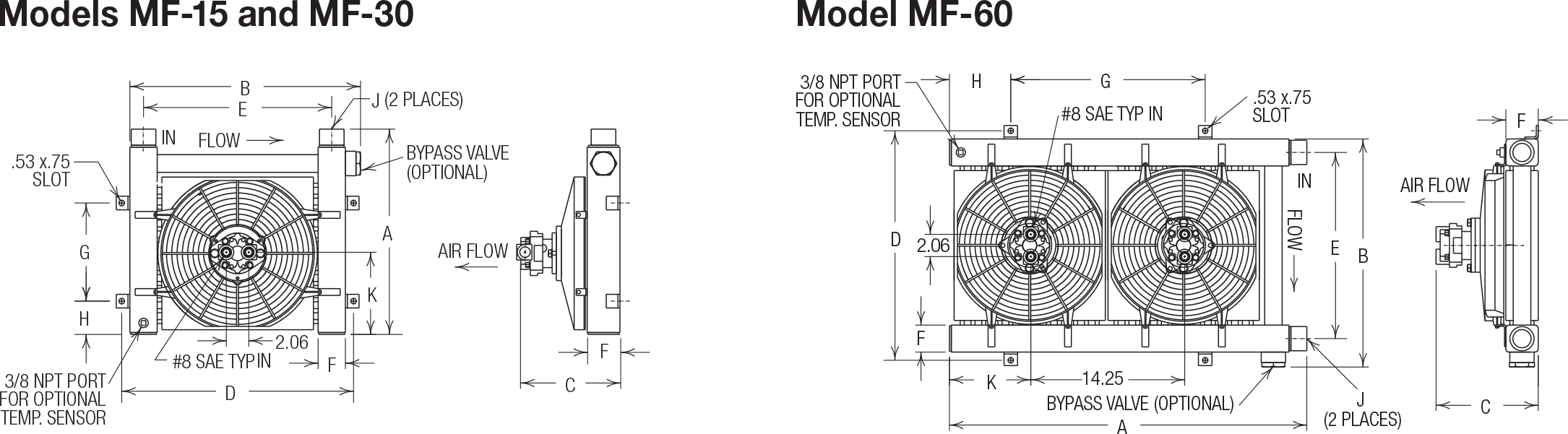 - Connection Type: NPTConnections material: SteelFan assembly material: High Impact PlasticFin material: AluminumHydraulic motor displacement: .22in3/ Rev.Manifold material: SteelMaximum allowable hydraulic motor back pressure: 1000 PSIMaximum hydraulic motor pressure: 2000 PSIMaximum operating pressure (psi): 300Maximum operating temperature (°f): 350Model series: MFModel size: 60Rpm: 2200Tube material: CopperTurbulator material: Steel