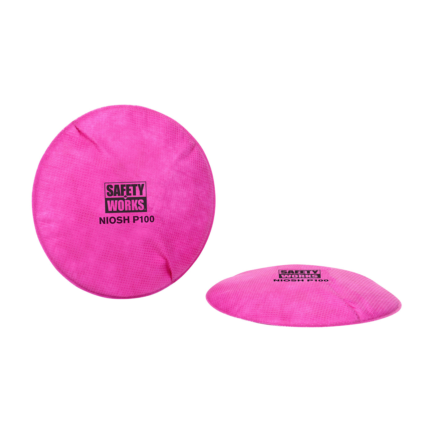 - Brand: Safety Works®Case qty: 48Case uom: prCategory: Respiratory SafetyColor: MagentaGrouping: CartridgesNiosh p100: 1Segment: Filters and CartridgesSize: OSSizes: --OS--Specs: P100 Pancake Disc| NIOSH Approved|NIOSH 99.97% filter efficiency Compatible with Safety Works Half Mask and Full FacepieceStyle: SWX00395